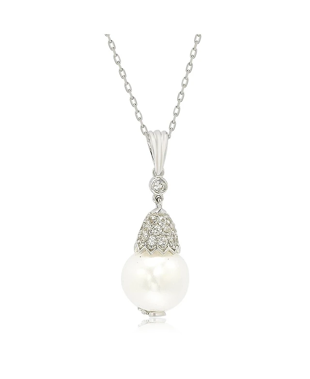 Suzy Levian Sterling Silver Pearl & White Sapphire Cluster Earrings