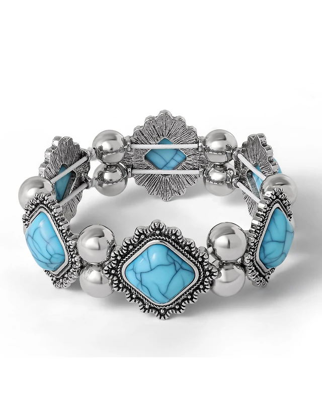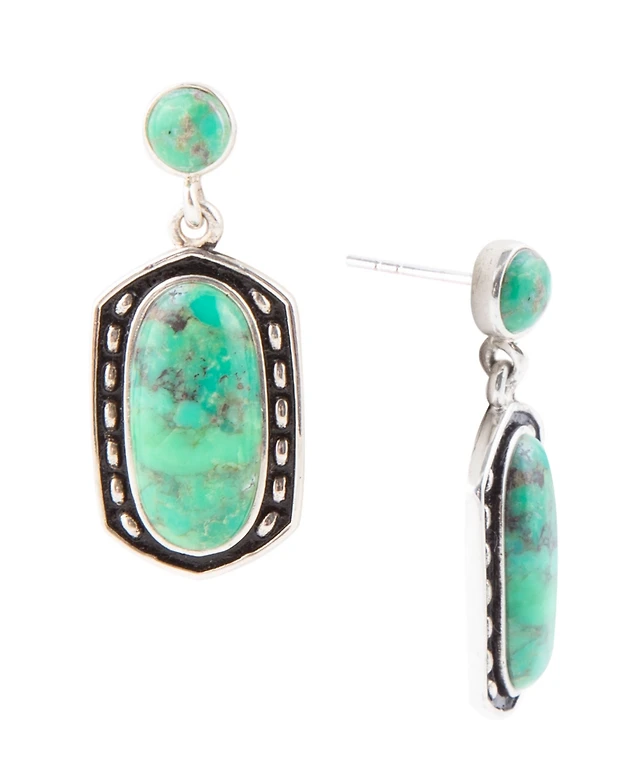 Barse Odyssey Genuine Turquoise Long Rectangle Statement Earrings