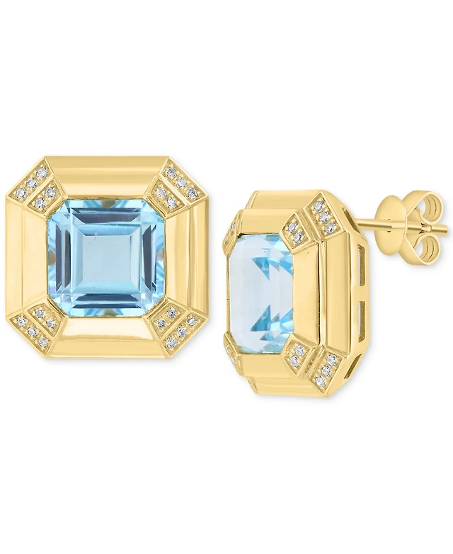London Blue Topaz (3-1/10 ct. t.w.) and Diamond (1/6 ct. t.w.) Stud Earrings in Sterling Silver