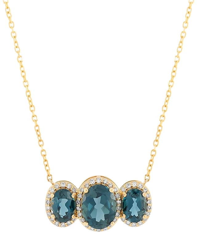Blue Topaz (1-1/10 ct. t.w.) & Lab-Created White Sapphire (1/6 Pear Halo 18" Pendant Necklace 10k Gold (Also Additional Gemstone
