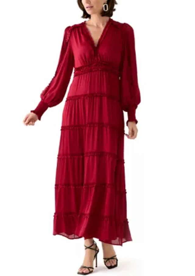Lara Women's Long Flutter Sleeves Beaded Dress