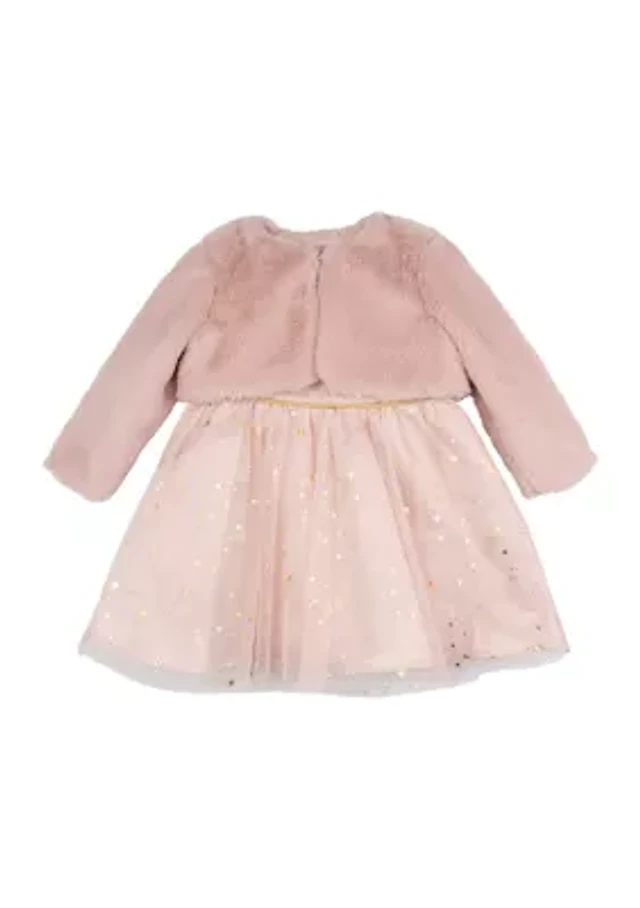 Baby Girls Foil Stars Mesh Dress with Jacket