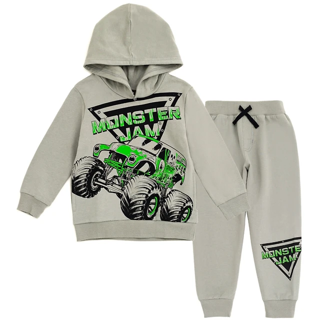 Monster Jam Toddler Boys Grave Digger Mutt Megalodon Fleece Pullover Hoodie & Pants to
