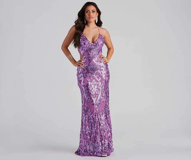 Sydney Sequin Lace-Up Mermaid Dress