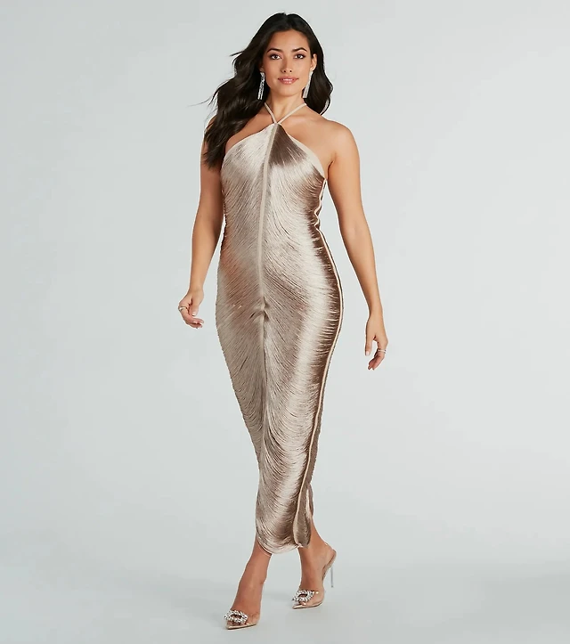 Laney Ruffled Slit Glitter Knit Mermaid Dress