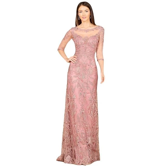 Lara Women's Detachable Half Sleeve Lace Sheath Gown