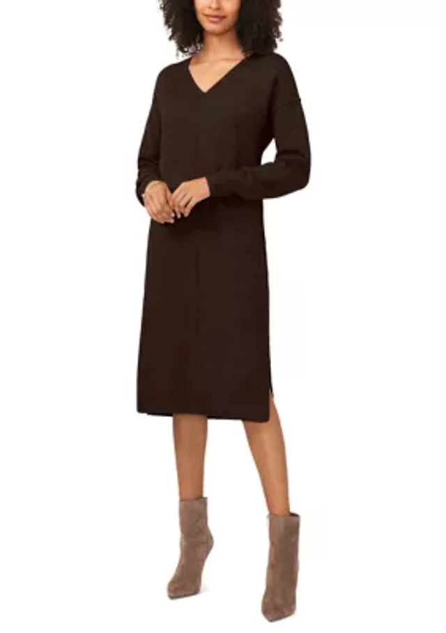 Women's Long Sleeve Solid A-Line Sweater Dress