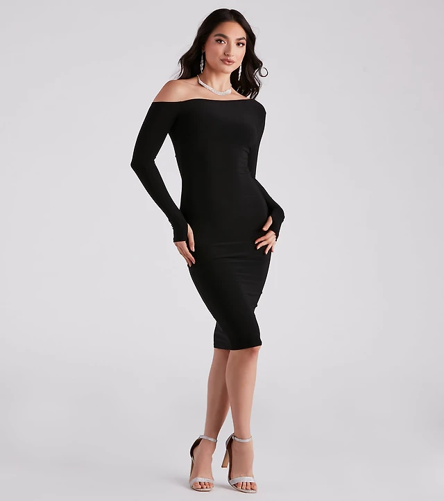 Deep Drama Long Sleeve Bodycon Dress