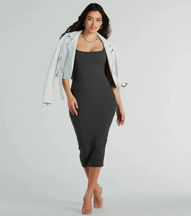 Basic Charm Crew Neck Bodycon Midi Dress