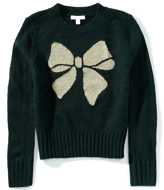 KatieJNYC Big Girls Maggie Intarsia Bow Long Sleeve Sweater