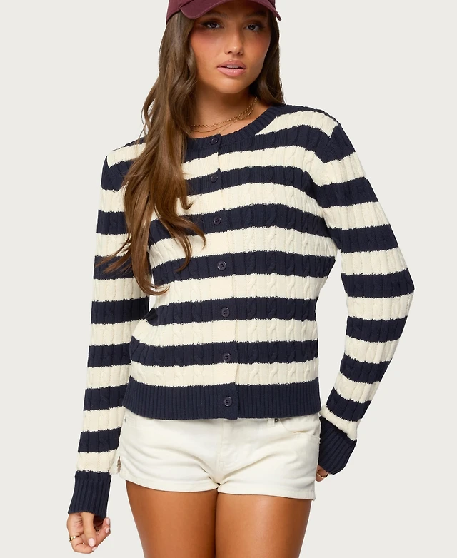 Cable Striped Cardigan Sweater