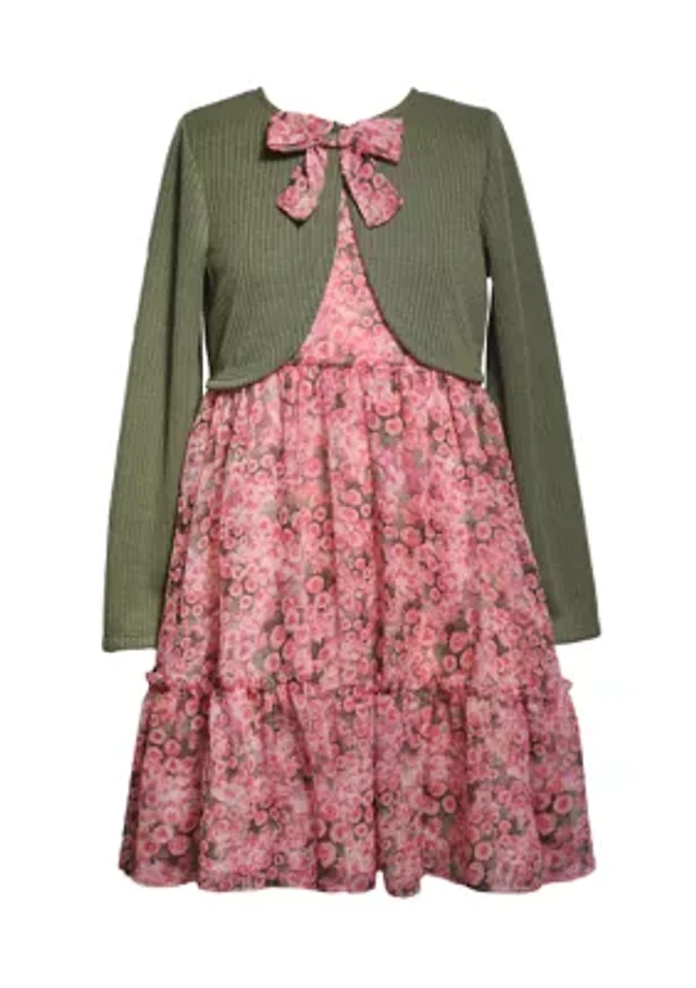 Girls 7-16 Floral Dress and Solid Cardigan Set