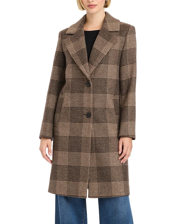 Vince Camuto Women's Single-Breasted Wool-Blend Boyfriend Plaid Coat