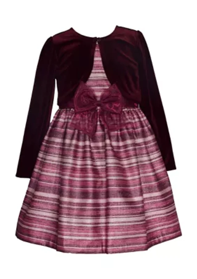 Toddler Girls Stretch Velvet Dress with Cardigan