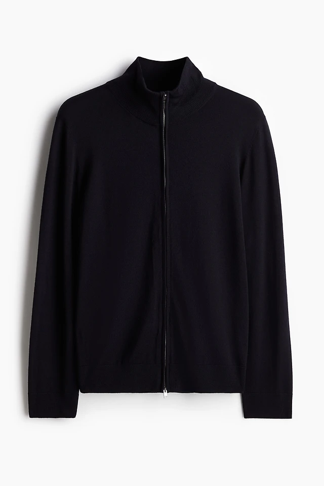Slim Fit Merino Wool Cardigan with Zipper