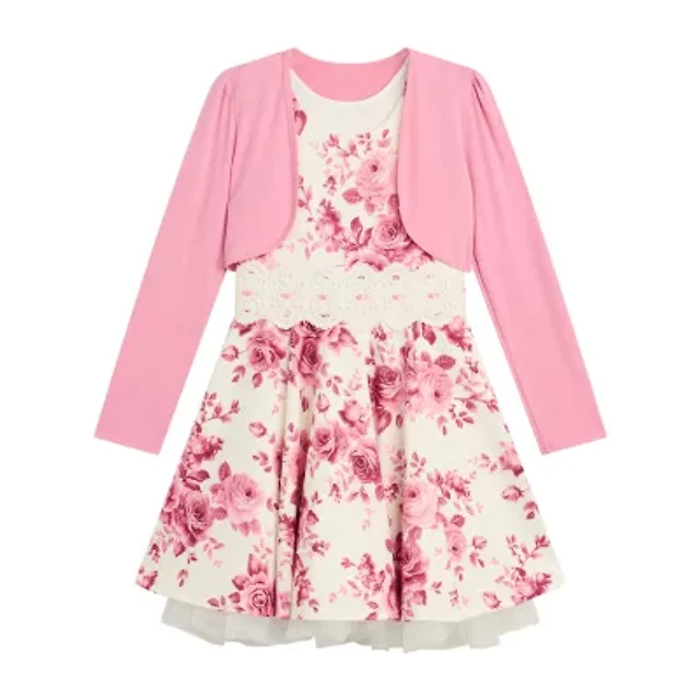 Hope & Henry Little and Big Girls' Organic Puff Sleeve Bow Detail Intarsia Sweater Dress