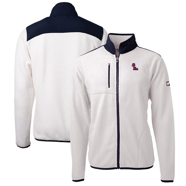 Men's Cutter & Buck White/Navy Jackson State Tigers Big & Tall Cascade Eco Sherpa Fleece Full-Zip Jacket