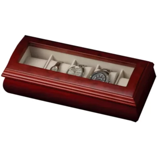 Mele and Co Emery Glass Top Cherry-Finish Watch Box