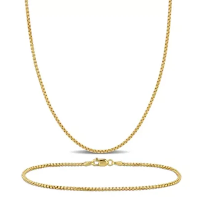 2-Piece Set of Men's 1.6mm Box Link Chain Necklace and Bracelet in 10K Yellow Gold, 24" & 9"