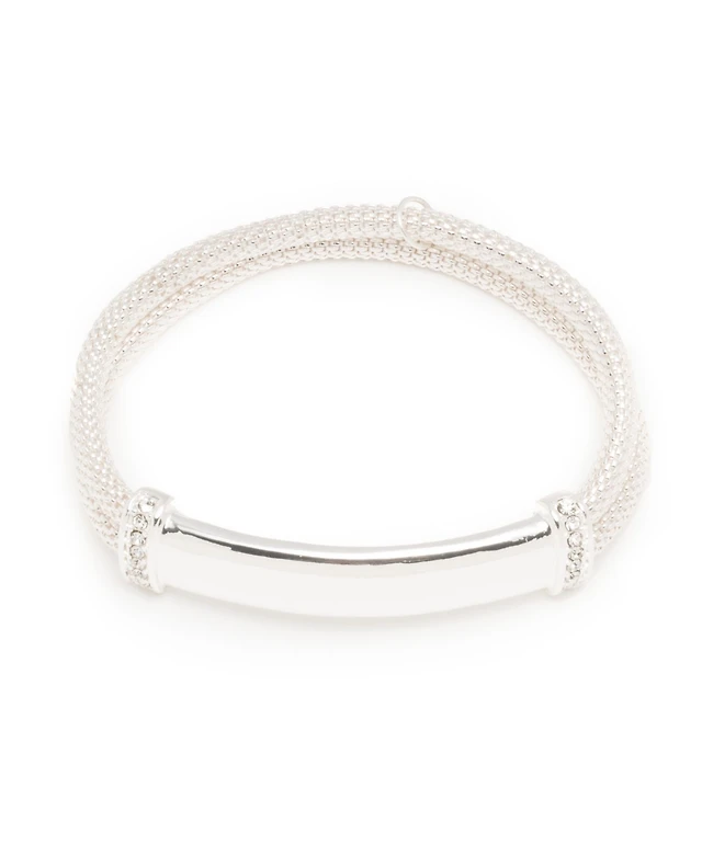 Silver-Tone Box Treasure Stone Line Flex Bracelet