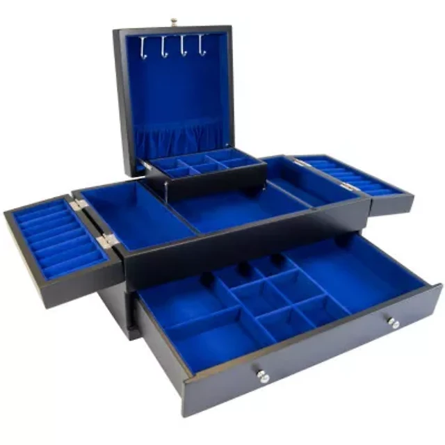 Maria Plush Fabric Jewelry Box and Ring Case with Twenty-Four Sections in Black - Online Only