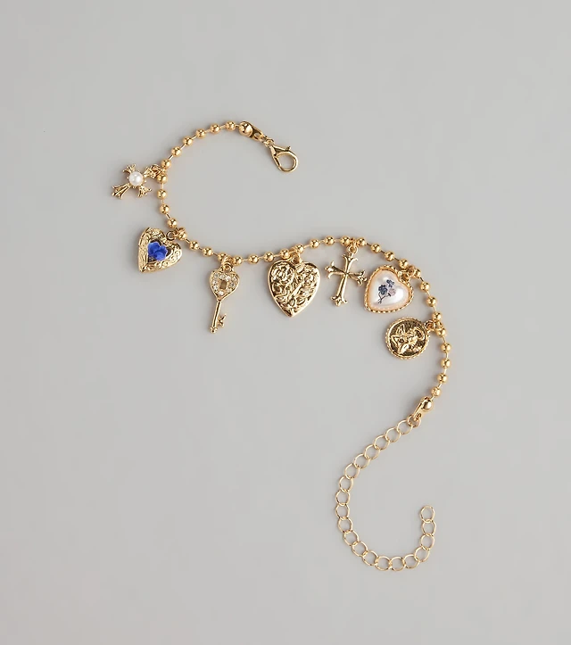 Multi-Pack Cross and Heart Charm Bracelets - 3 Pack