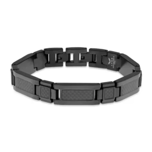 Black Ion Plated Stainless Steel Curb Bracelet with Fancy Push Lock
