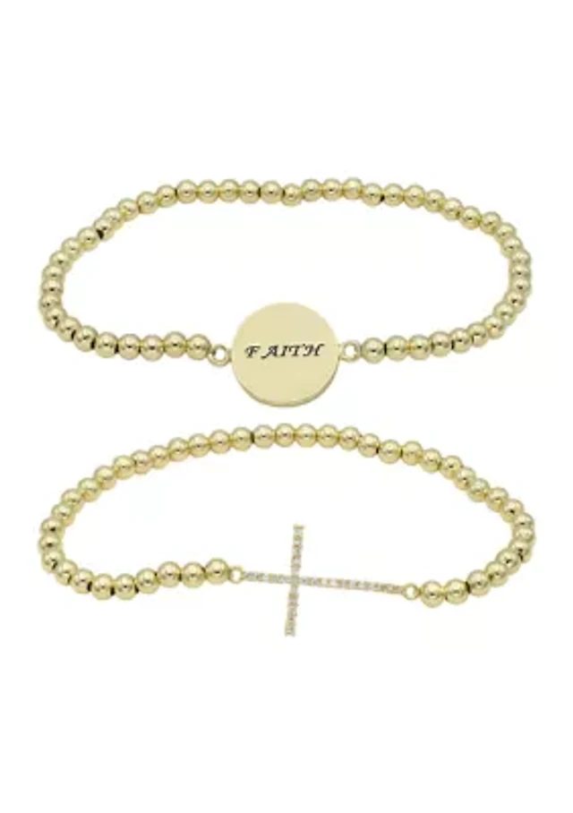 Macy's Silver-Plated Beaded Cross Charm Stretch Bracelet