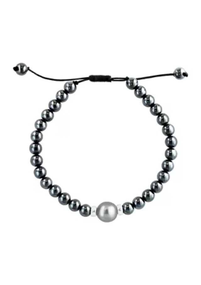 Sterling Silver Black/Tahitian Pearl, Hematite Adjustable Men's Bracelet