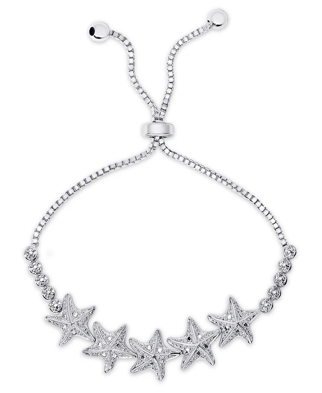 Silver Plate Cubic Zirconia Starfish Adjustable Bolo Bracelet