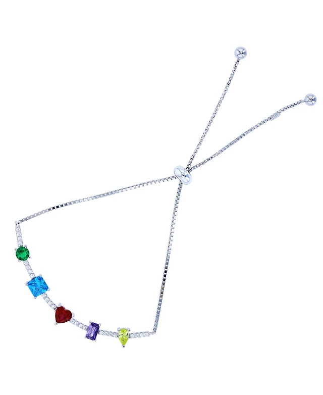 Macy's Fine Silver Plated Cubic Zirconia Hexagon Shaped Bezel Bolo Adjustable Bracelet
