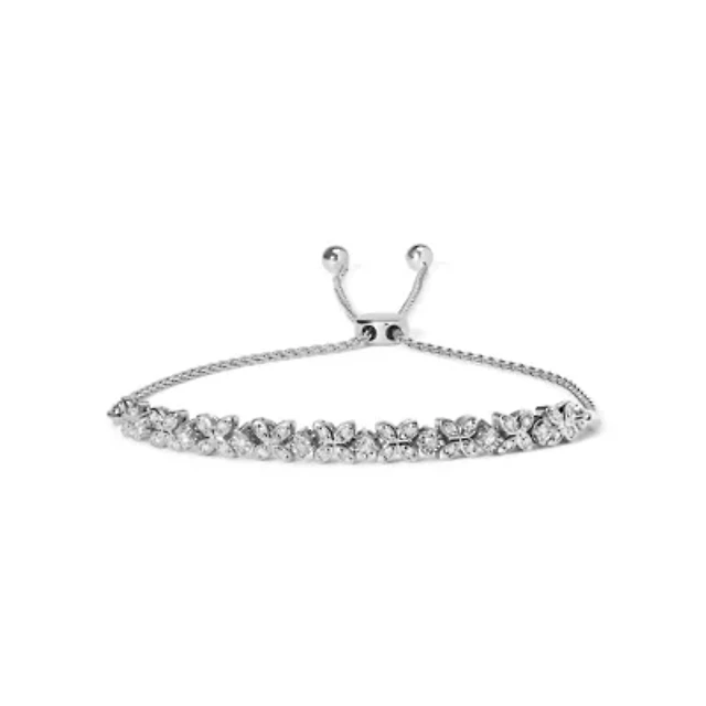 Silver 1/4 Cttw Diamond Marquise Shaped Link Adjustable Bolo Bracelet