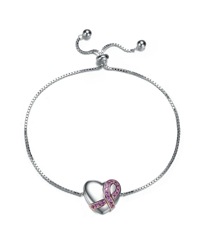Silver Plate Simulated Ruby And Cubic Zirconia Heart Adjustable Bolo Bracelet
