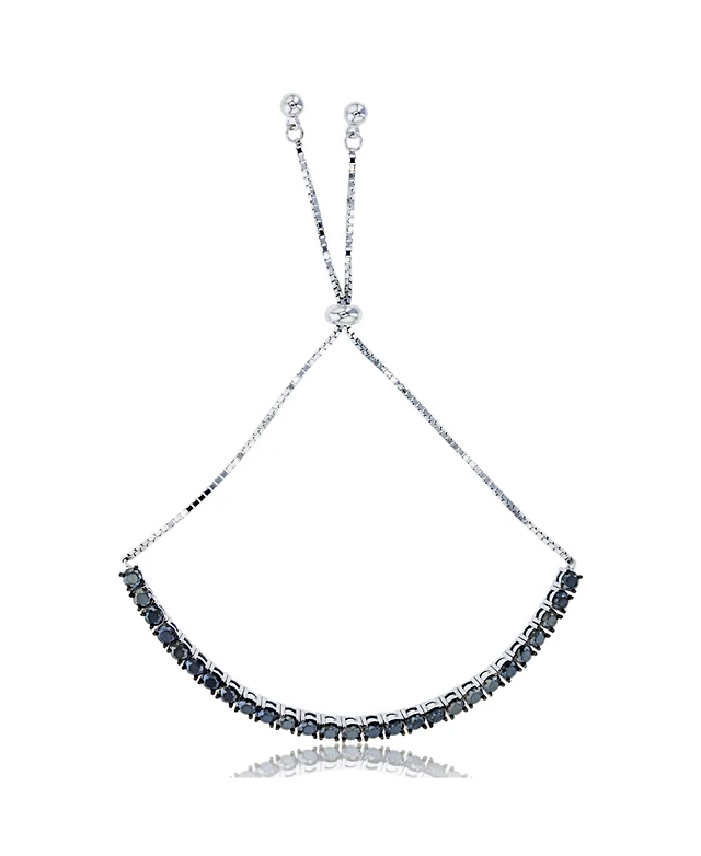 Black Diamond Accent Evil Eye Adjustable Bolo Bracelet in Silver Plate