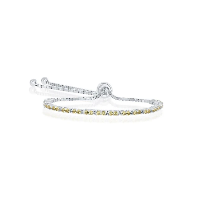 Cubic Zirconia Tennis Adjustable Slider Bolo Bracelet in Silver Plate