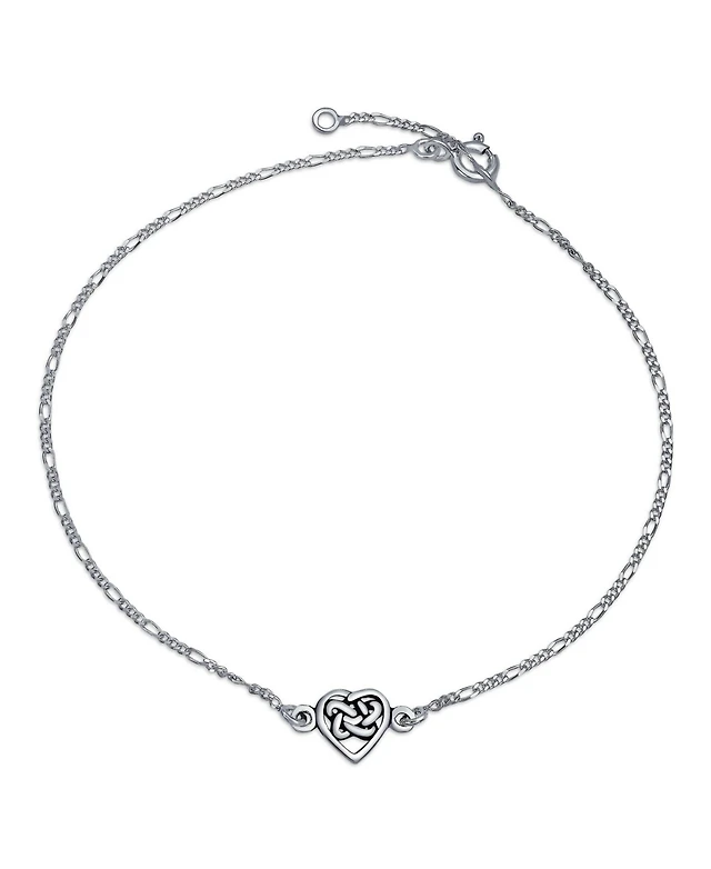 Bling Jewelry Love Knot Heart Shape Celtic Triquetra Anklet Ankle Bracelet Figaro Link Oxidized Sterling Silver Adjustable