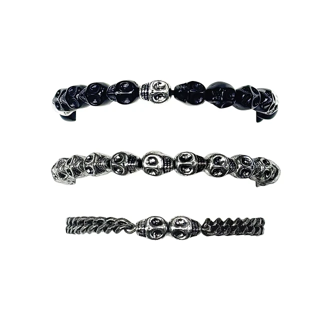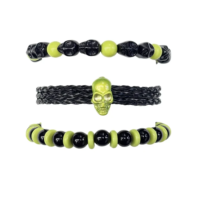 Multi-Pack Black Skull Beaded Bracelets - 3 Pack