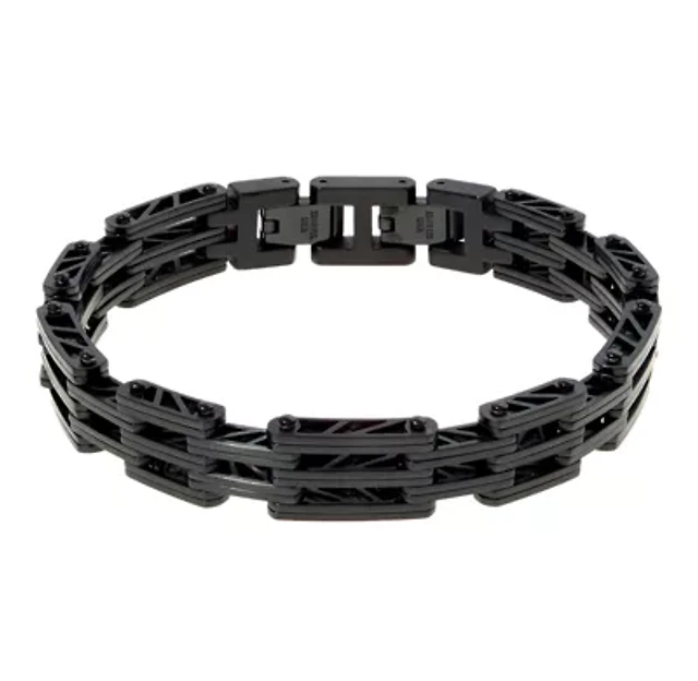 Mens Stainless Steel and Black Ceramic Link Bracelet