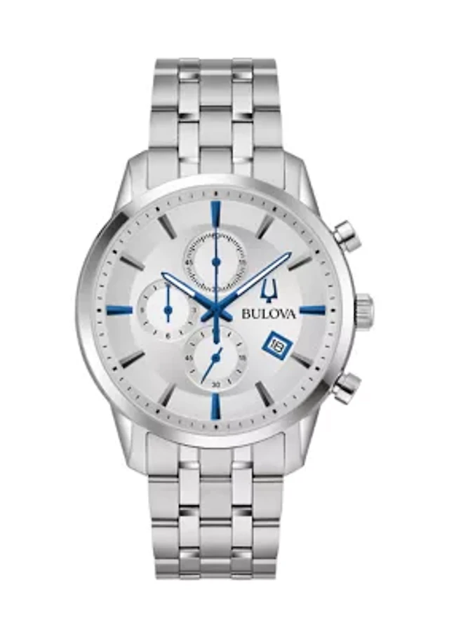 Bulova Prestige Mens Chronograph Silver Tone Stainless Steel Bracelet Watch 96b459