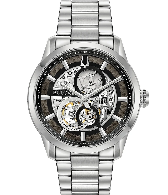 Bulova Surveyor Mens Automatic Silver Tone Stainless Steel Bracelet Watch 96b436