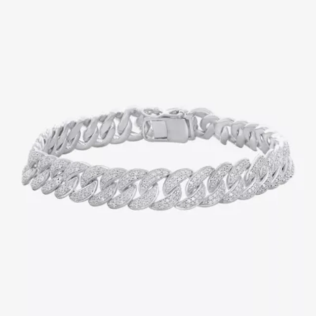 Cubic Zirconia 10mm Curb Chain Bracelet in Solid Sterling Silver - 8.5"