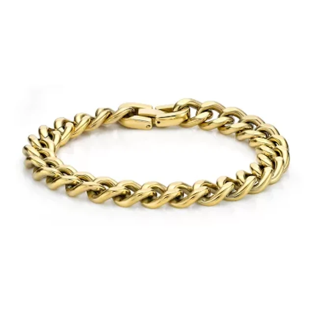 Steeltime Men's 18K Gold-Plated and Stainless-Steel Cuban Chain and Tiger Eye Id Bracelet