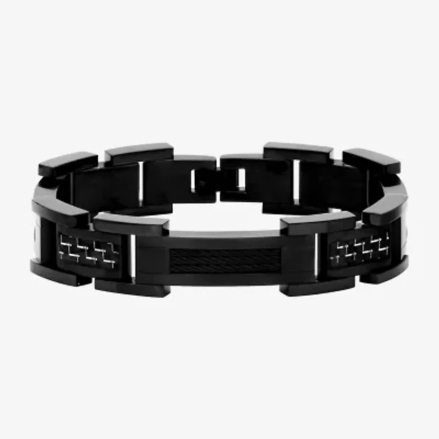 Diamond Accent Bracelet in Stainless Steel with Carbon Fiber Inlay - 8.5"