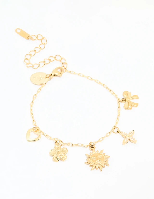 Chanteur Girls 18K Yellow Gold Plated Heart Charm Bracelet