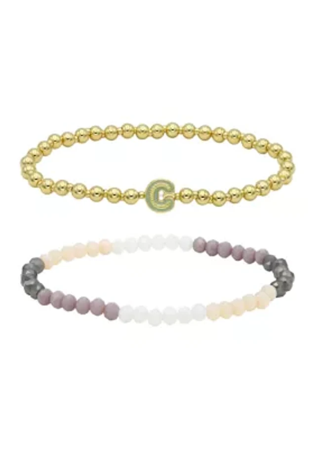 Macy's Silver-Plated Beaded Evil Eye Charm Stretch Bracelet