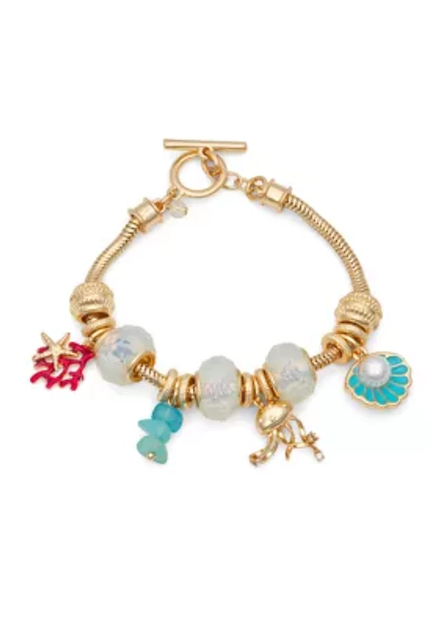 Footnotes Multi Strand Charm Womens Pink Quartz 10K Gold Over Brass Butterfly Flower Heart Bolo Bracelet
