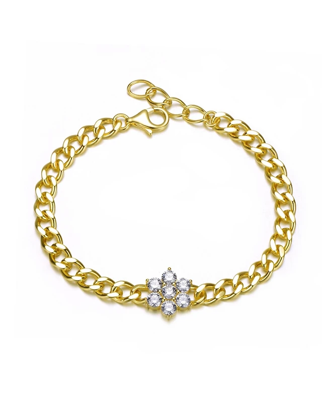 Devata Contour-lined Clover Bracelet Gold Plated Sterling Silver, Medium 7.5
