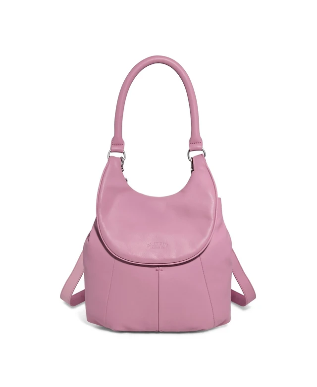 Susu Leather Backpack Purse for Women Convertible Crossbody Bag Medium Size Pink Handbag with Front and Back Pockets