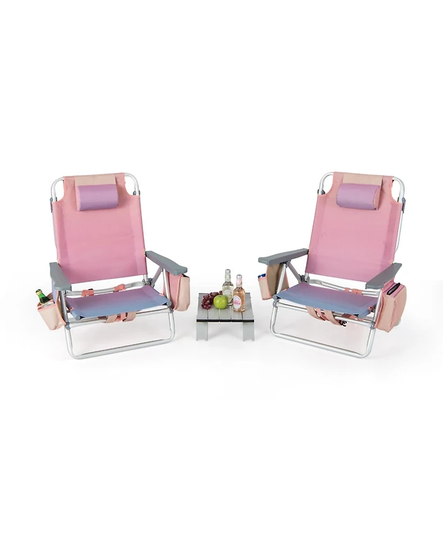Gymax 2PCS Folding Backpack Beach Chair Table Set 5-Position Outdoor Reclining Chair