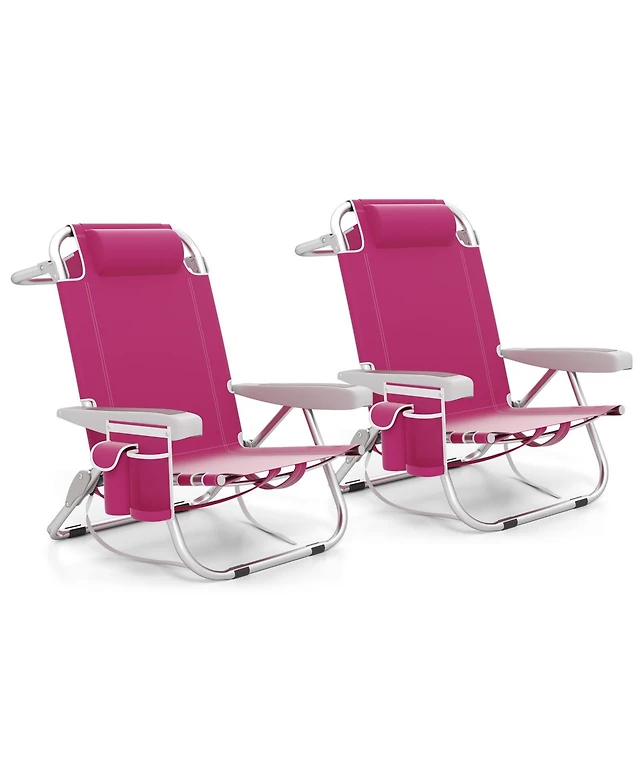 Costway 2-Pack Folding Backpack Beach Chair 5-Position Outdoor Reclining Chairs with Pillow